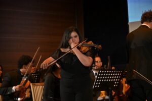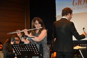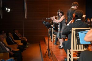 وتألقت خلال الحفل عازفة الكمان المصرية رنا عبد الوهاب، التي قدّمت عزفًا منفردًا أبهر الحضور ونال تصفيقًا حارًا. وفي لفتة مفاجئة، دعا المايسترو لوكا مديرة الأكاديمية، الدكتورة رانيا يحيى، للصعود إلى المسرح لعزف مقطوعة “الفراشة” للمؤلف عطية شرارة على آلة الفلوت، وهو ما أضفى طابعًا إنسانيًا ودافئًا على الأمسية.