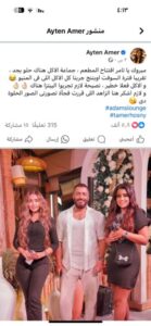 هنأت الفنانة ايتن عامر النجم تامر حسني لافتتاح مطعمه الجديد حيث حرصت على حضور افتتاح المطعم كما كتبت كلمات تهنئة خاصة على حسابها الخاص على الفيس بوك