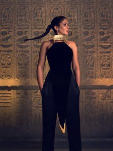 وفي صورة أخرى، ظهرت منى وهي تستخدم قرص الشمس، أحد أبرز الرموز في الحضارة المصرية القديمة، والذي كان يرمز إلى النور والحياة والطاقة الإلهية، في إشارة إلى ارتباط المصري القديم بالطبيعة والكون، وإيمانه بدورة الحياة والتجدد. أما الصورة الرابعة، فلفتت الأنظار بتأكيد منى زكي على ملامحها الفرعونية، في رسالة فخر واضحة بالجذور والهوية المصرية.