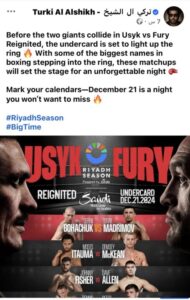 هذه الليلة الحماسية ستكون جزءاً من فعاليات موسم الرياض، حيث سيعيش جمهور الملاكمة تجربة لا تُنسى على أرض المملكة، في حدث رياضي عالمي يُنتظر أن يخطف الأنظار.